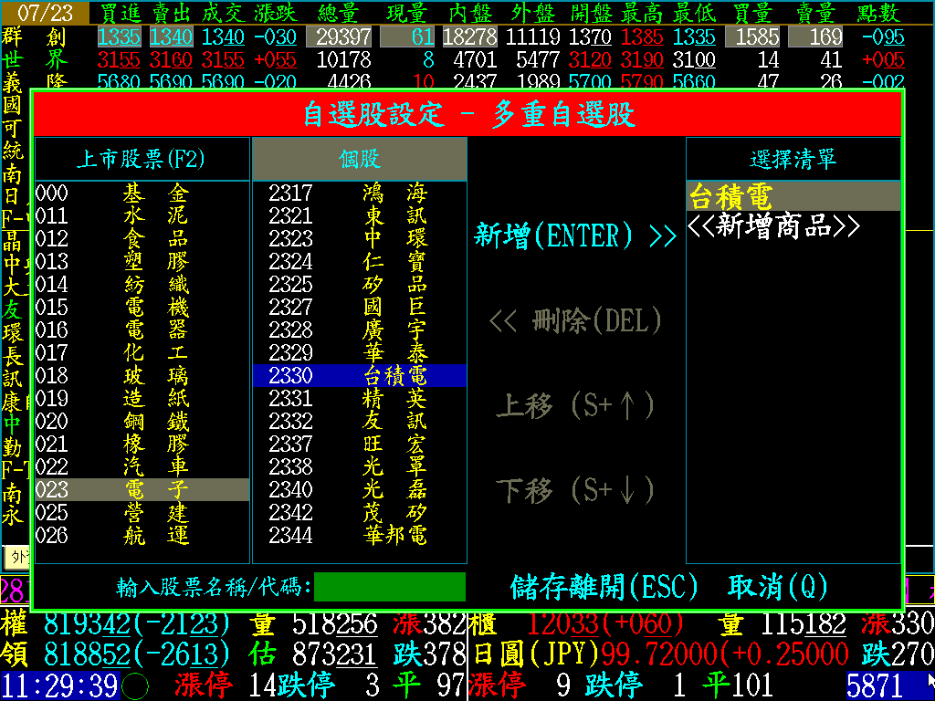 1.F10自選股設定畫面改用視窗化操作方式,方便使用鍵盤及滑鼠 操作新增、刪除、移動股票等作業。