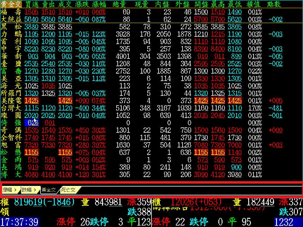 1.修改盤中即時價量提示「SHIFT+F6」、大單成交回報「Ctrl+F1」,增加存讀檔功能,於盤中或收盤後開啟時,先讀取前一次存檔商品