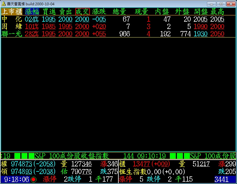 上市股、上櫃股、上市櫃、興櫃、指數期貨、權證綜合報價、國際重要指數報價畫面頁籤化。