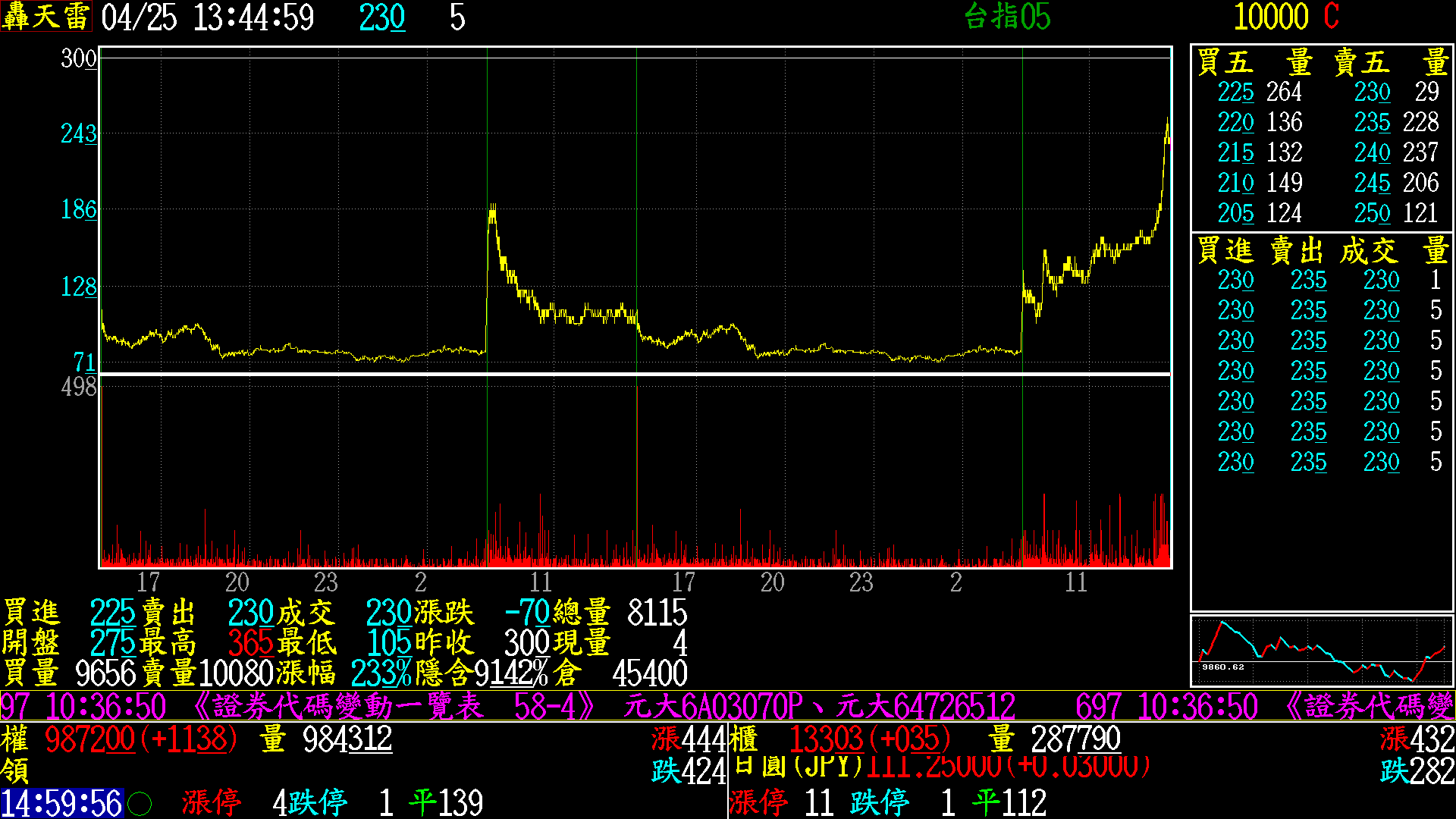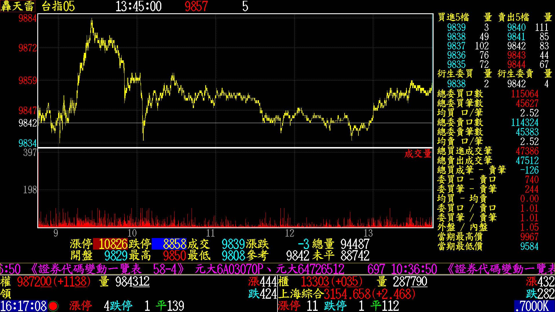 當日下午盤走勢圖畫面(下午盤開盤後呈現畫面)